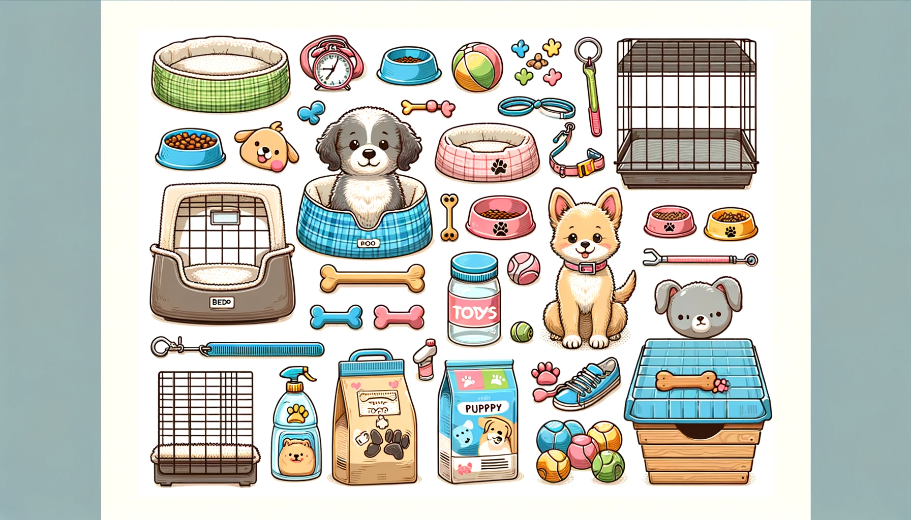 이 준비물들은 강아지가 편안하게 적응하고 건강하게 자라기 위해 꼭 필요하다.