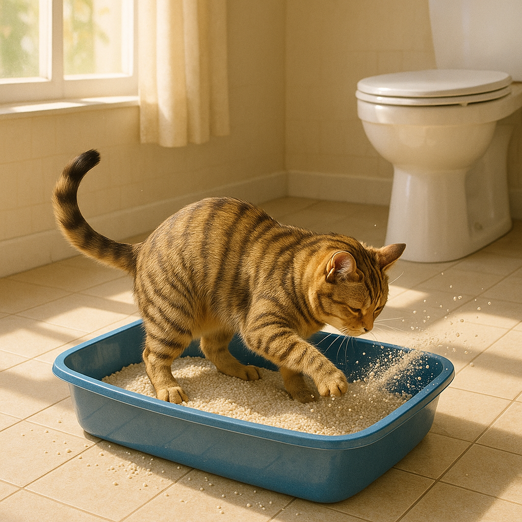 화장실이 너무 작거나 모래가 얕으면 고양이는 “덮는 느낌”이 부족합니다.