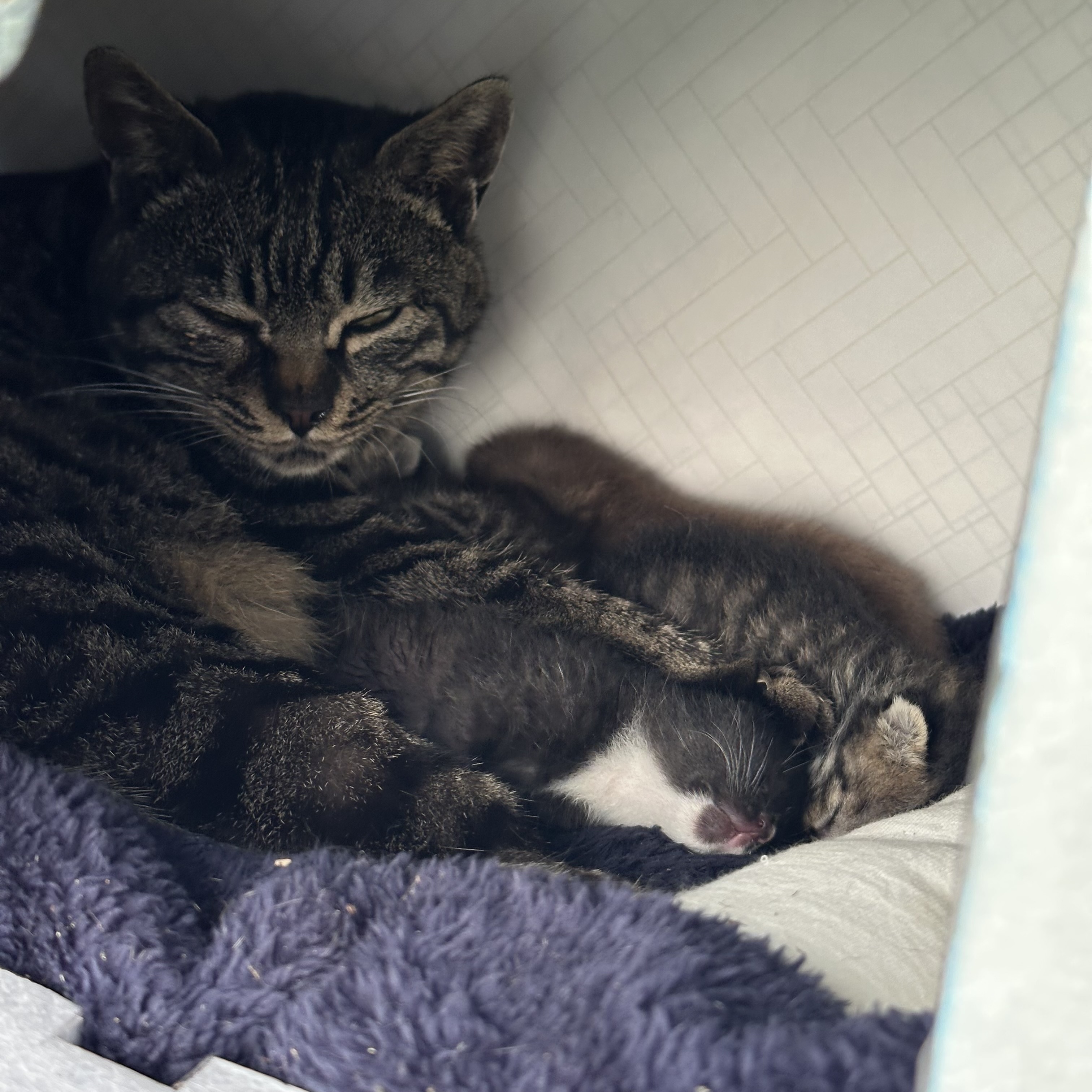 고양이가 배를 자꾸 핥거나 배 근육이 수축하는 듯한 움직임을 보인다면 진통이 시작된 거예요. 이때부터 몇 시간 내로 새끼를 낳을 가능성이 커요.