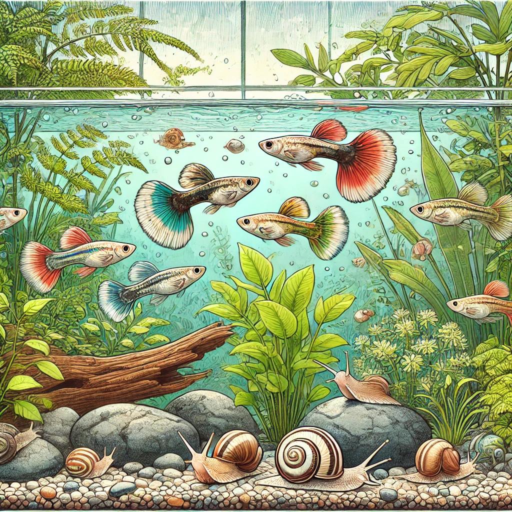 구피와 달팽이는 서로 해를 끼치지 않는 평화로운 생물로, 같은 어항에서 잘 어울려 지낼 수 있습니다. 구피 어항에 달팽이를 추가하면 청소 효과와 시각적 즐거움을 더할 수 있지만, 번식력과 수질 관리, 먹이 조절에 주의가 필요합니다. 구피와 달팽이를 함께 키우며 어항의 다양한 생태를 즐겨 보세요.