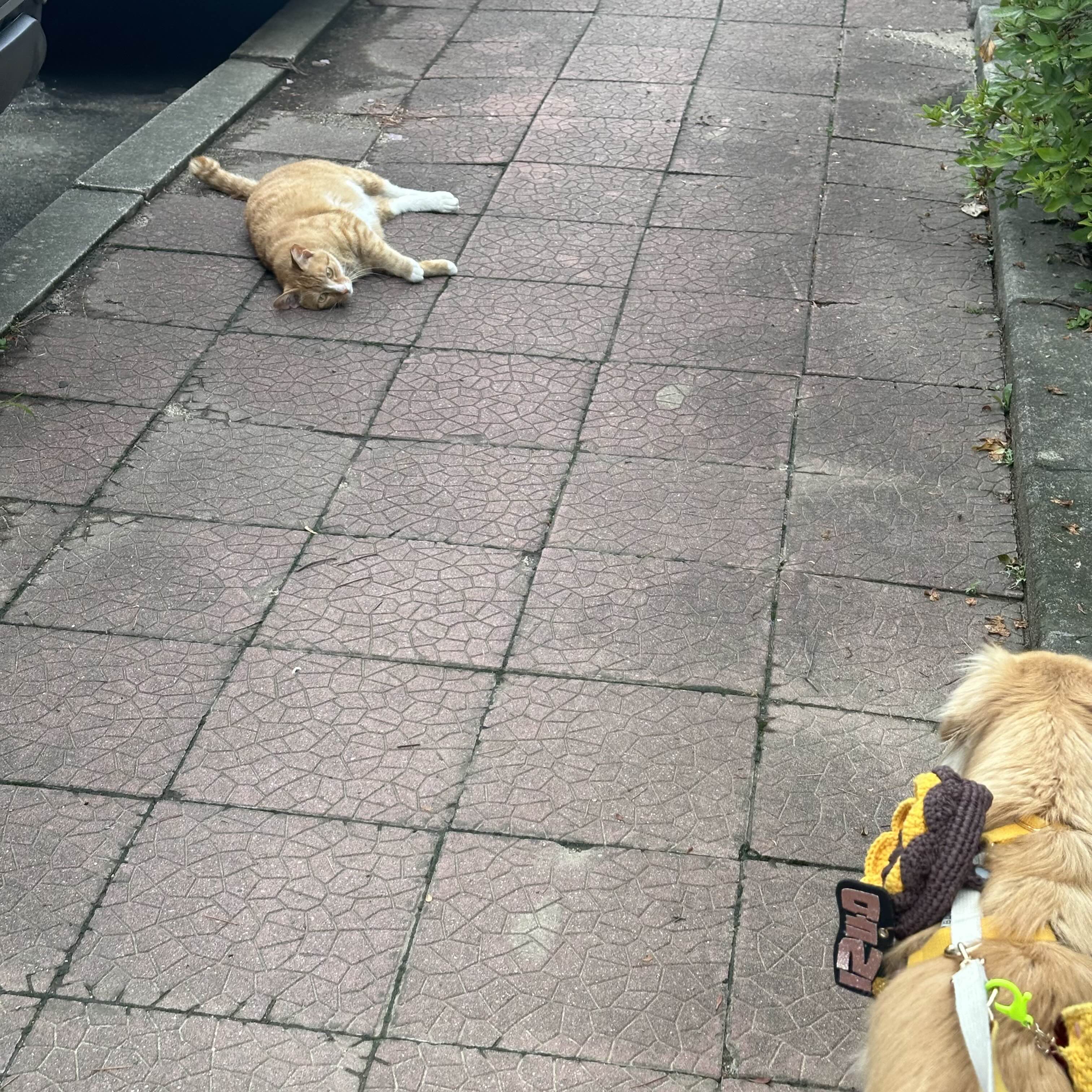 메리를 데려다주고 남은 닭가슴살을 마저 주러 가는 길, 역시나 저렇게 길바닥에 누워있다.