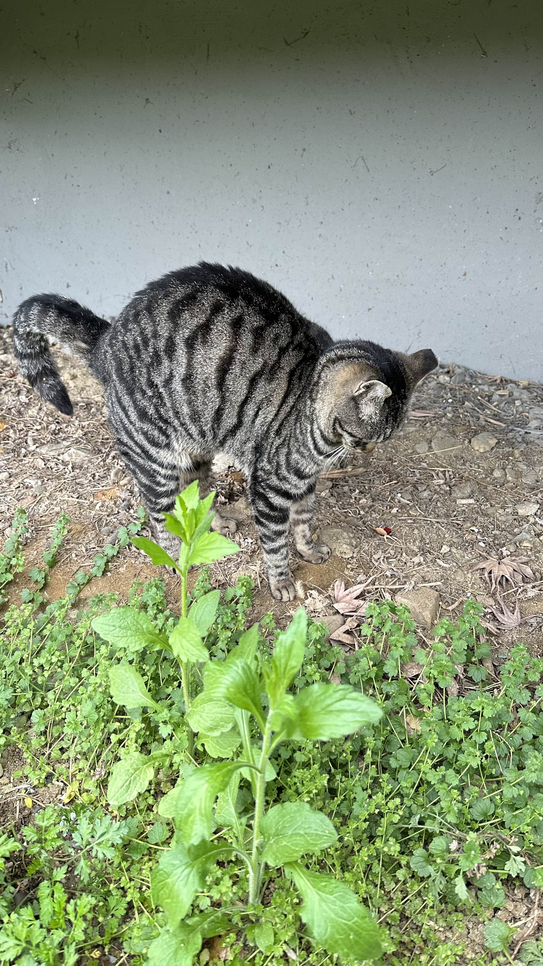 길냥이들은 스트레스를 받을때 구석에 숨는 경향이 있다. 비가 오는 날에는 더 많은 스트레스를 받을 수 있어 이런 행동을 보일 수 있다.