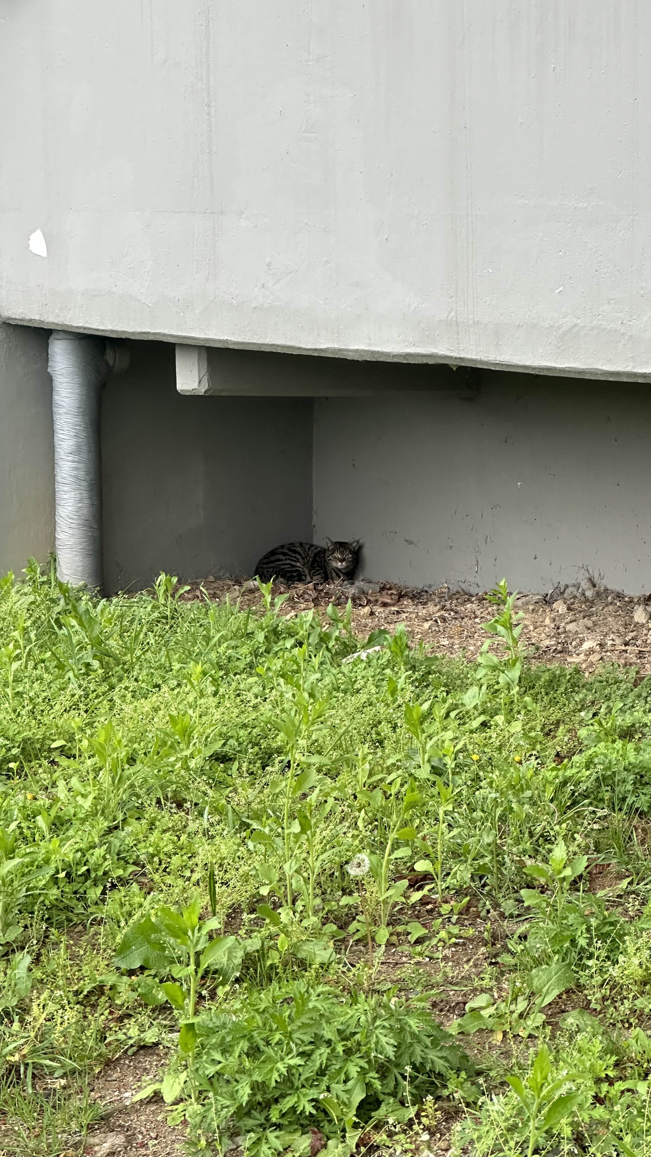 길냥이들이 구석에 있는 이유는 안정감을 찾기 위해 누워있을 수 있다고 한다. 비가 오는 날은 특히 그럴 수 있는데 비는 길냥이에게 불안감을 줄 수 있어 그런 불안감을 완화하기 위해 안정적인 장소를 찾을 수 있다고 한다.