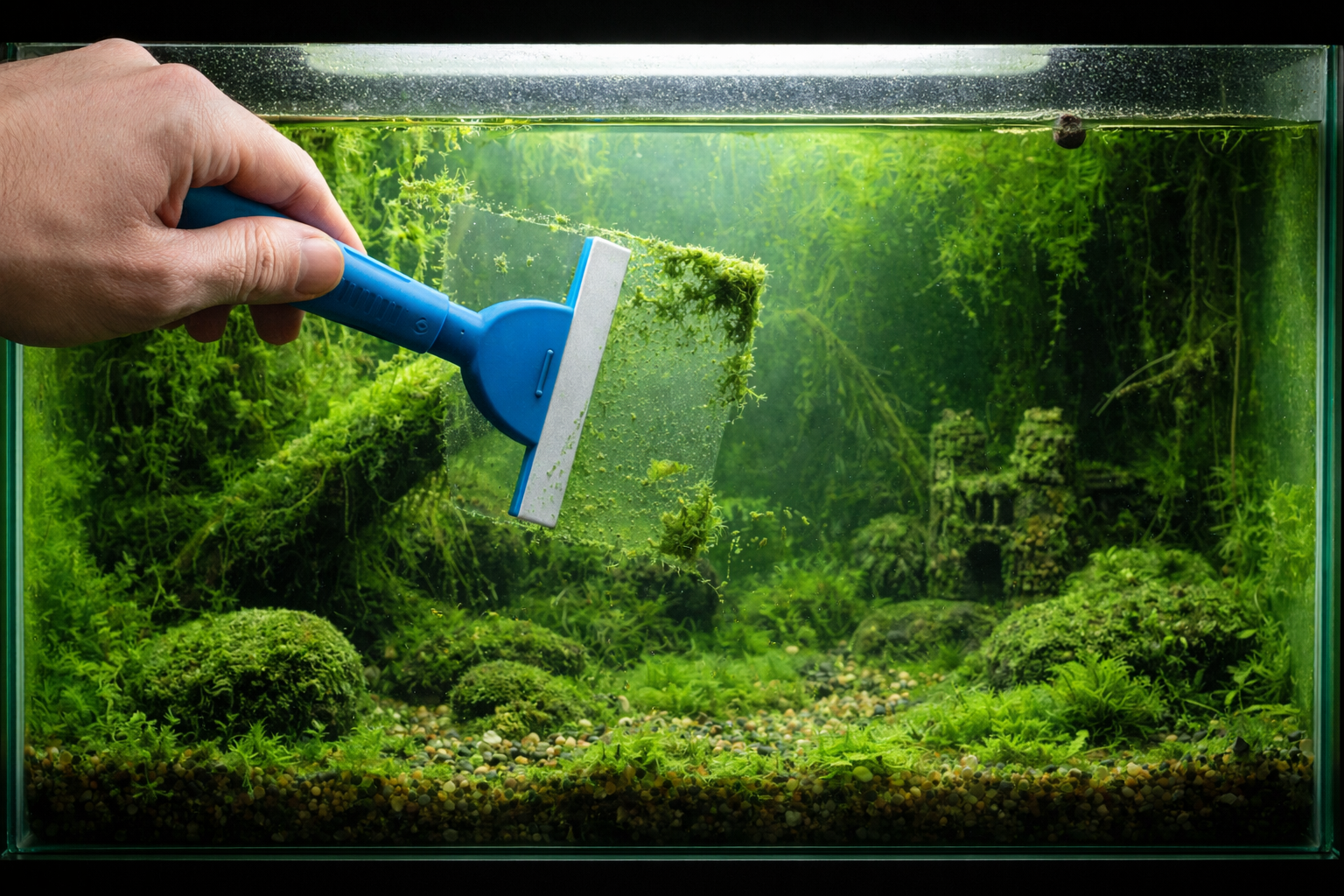 어항 조명을 하루 10시간 이상 켜두면 이끼에게는 최적의 환경이 됩니다.